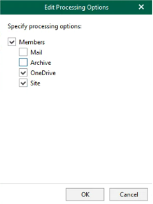 - If the account is a service or shared account that does not require backup, edit the backup job in Veeam and uncheck the Mailbox option under the user’s settings.